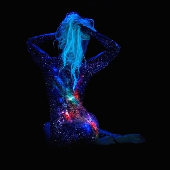 Джон Попплтон - известный американский художник. С детства увлекаясь фотографией, постепенно его хобби стало делом всей его жизни. Его картины космического и ночного бодиарта, созданные светящимися красками, впечатляют и завораживают. А какая картина понравилась вам и решились бы вы поучаствовать в качестве модели в таком стиле?